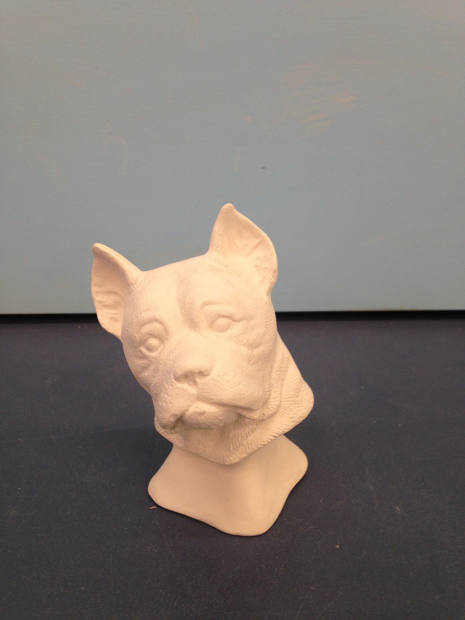 Item Number DOG-31. The size is approximately 4.5″ high by 3″ long. The price listed is for Bisque (white ceramics) so you can paint your own. Please contact us for the price of the Painted Art.