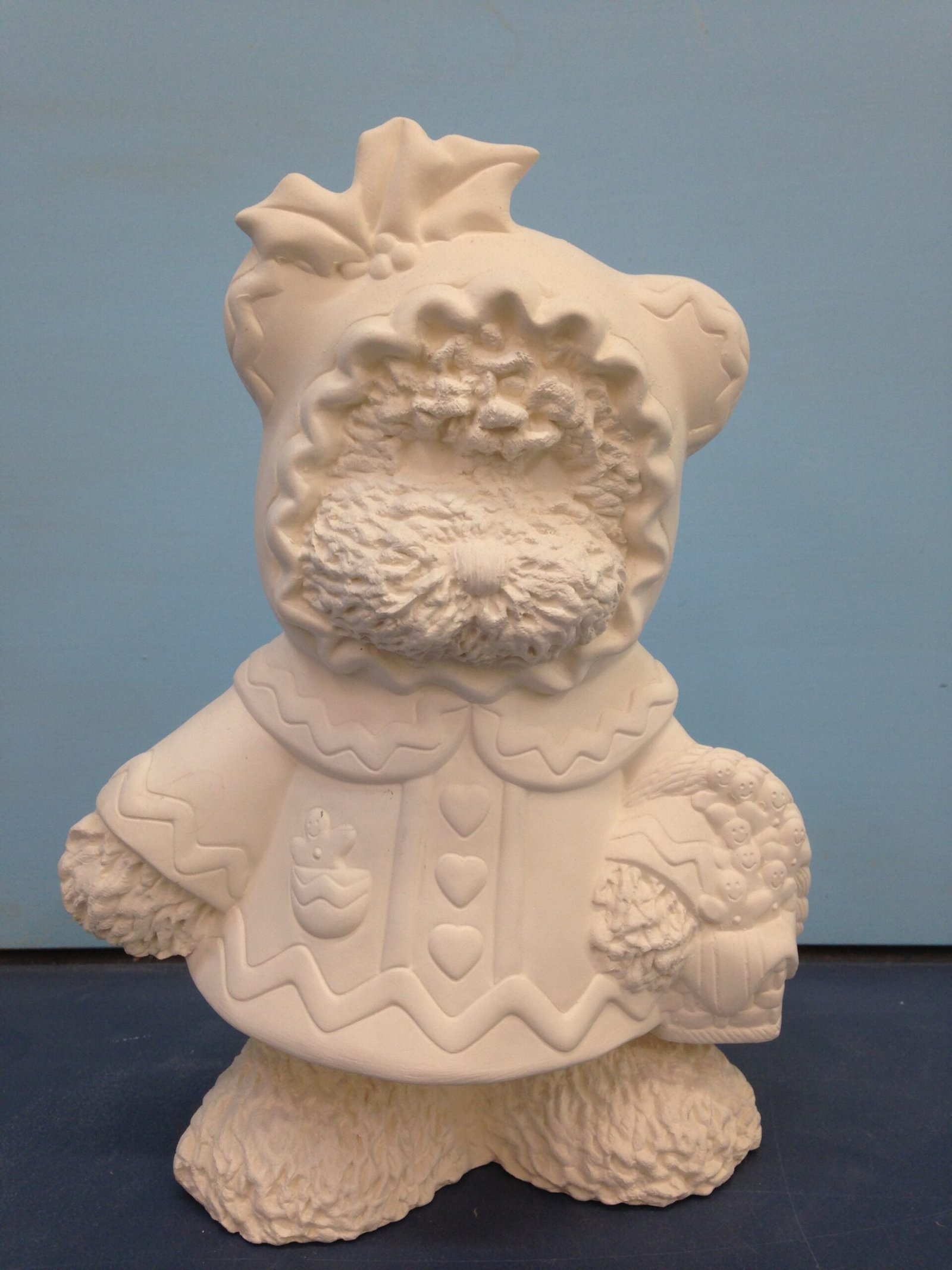 Item Number BE-80. The size is approximately 10.25″ high by 6.25″ long. The price listed is for Bisque (white ceramics) so you can paint your own. Please contact us for the price of the Painted Art.