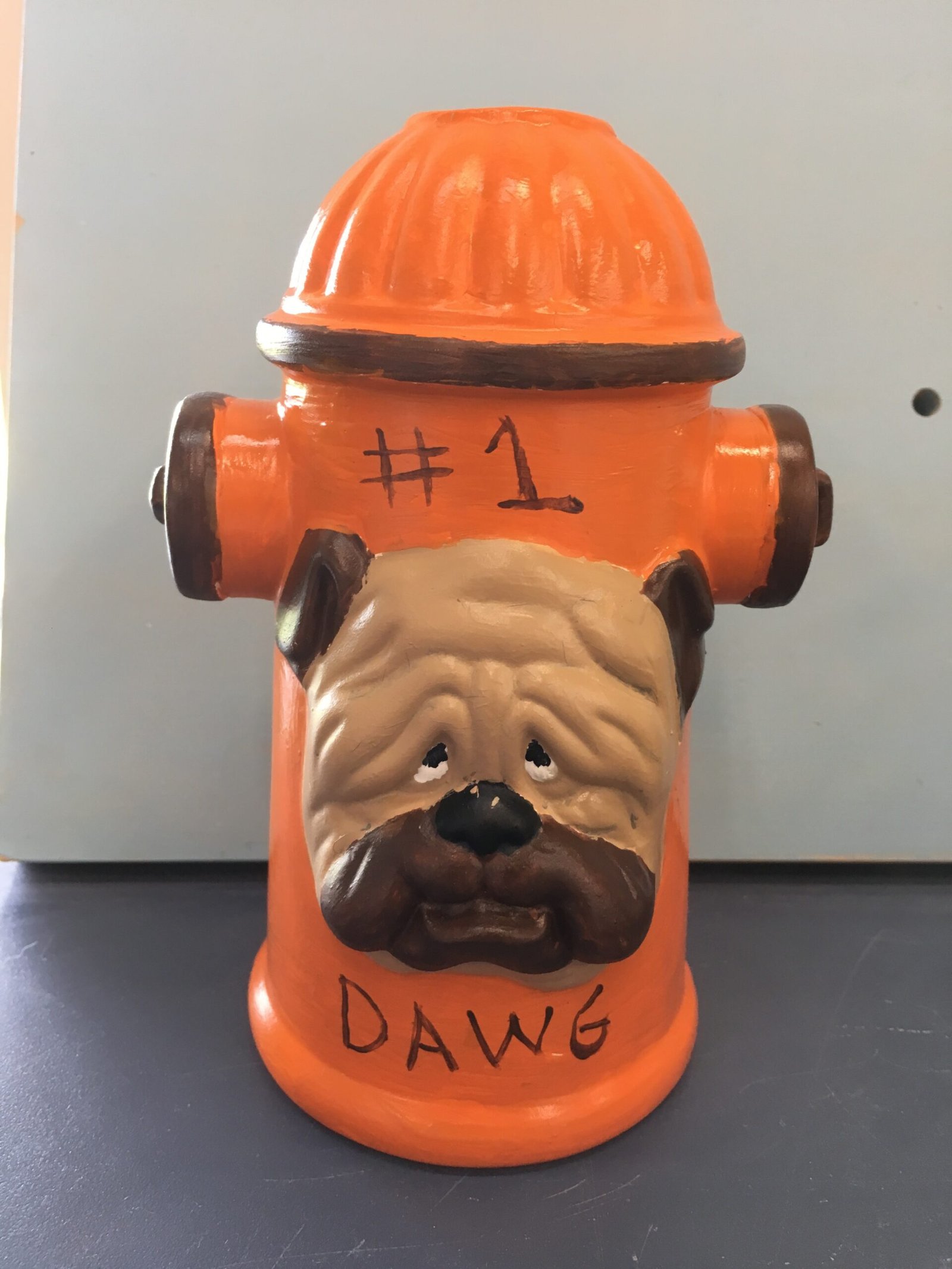 Item Number DOG-27. The size is approximately 7.5″ high by 5″ long. The price listed is for Bisque (white ceramics) so you can paint your own. Please contact us for the price of the Painted Art.