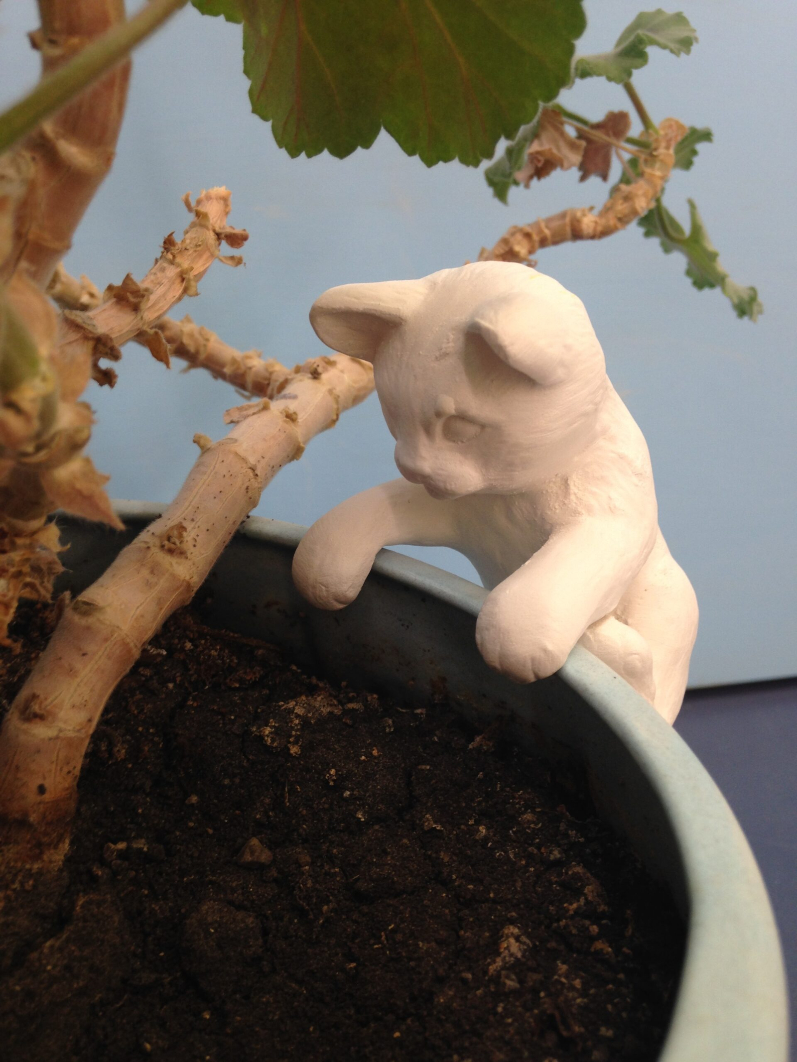 Item Number CAT-30. The size is approximately 5″ long by 3″ high. The listed price is for Bisque (white Ceramics) so you can paint your own. Please contact us for the price of the Painted Art.