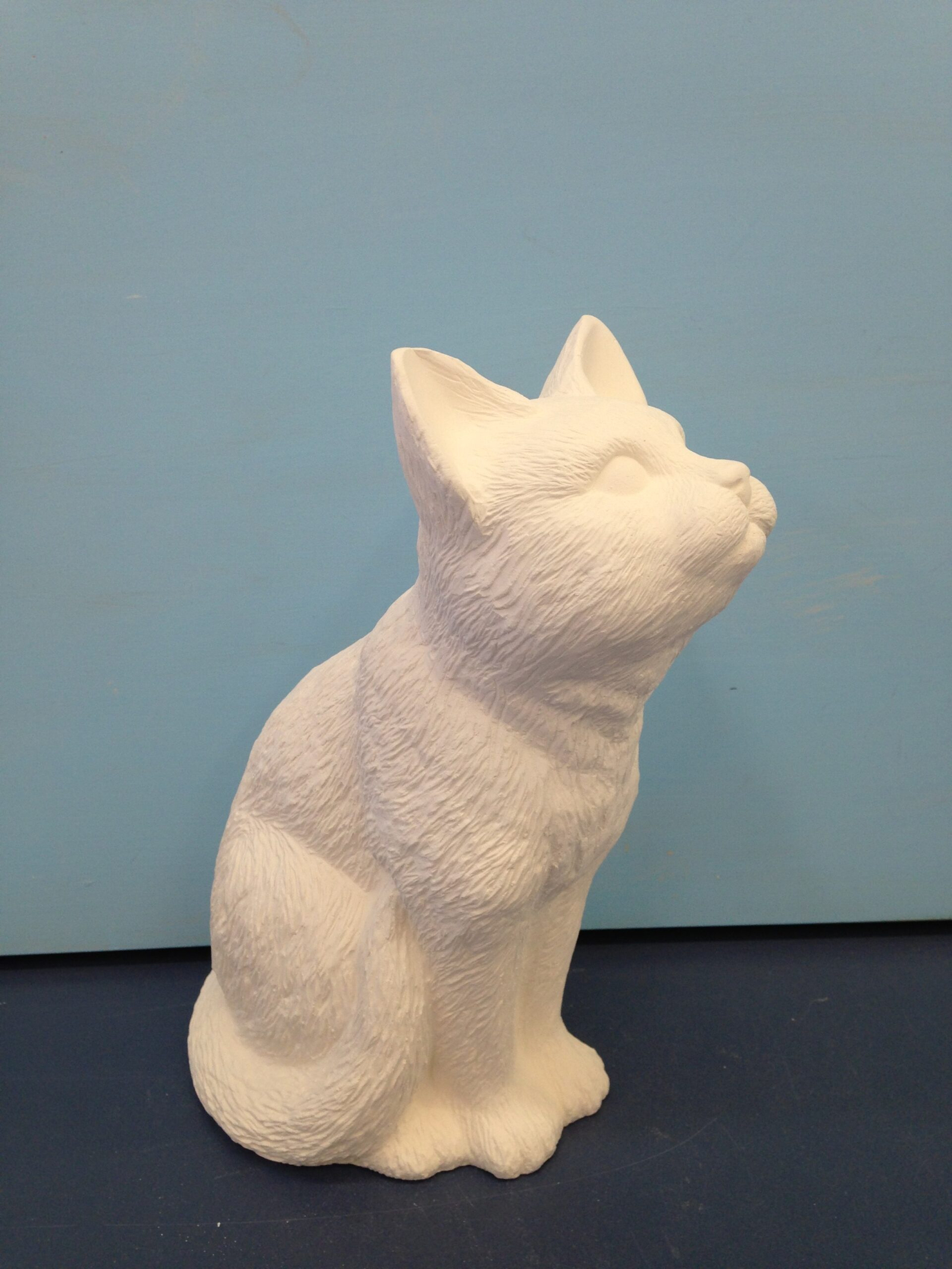 Item Number CAT-40. The size is approximately 9″ high by 7″ long. The price listed is for Bisque (white ceramics) so you can paint your own. Please contact us for the price of the Painted Art.