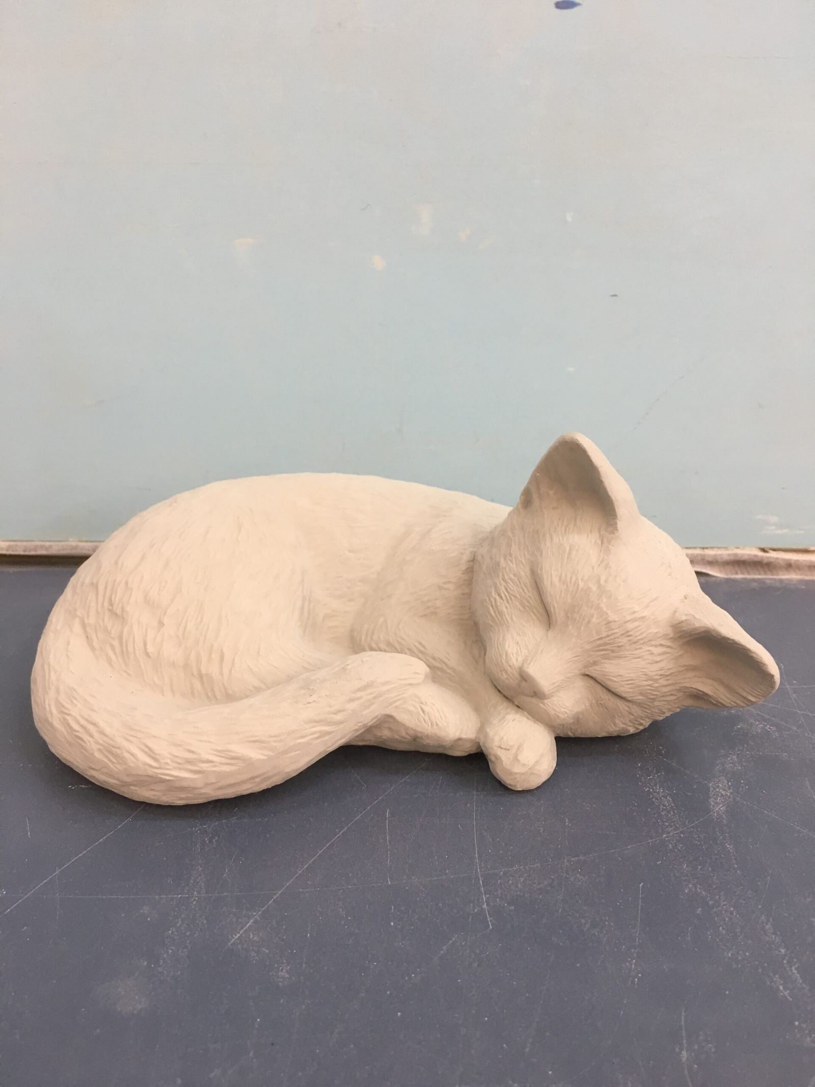 Item Number CAT-45. The size is approximately 3″ high by 6″ long. The price listed is for Bisque (white ceramics) so you can paint your own. Please contact us for the price of the Painted Art.