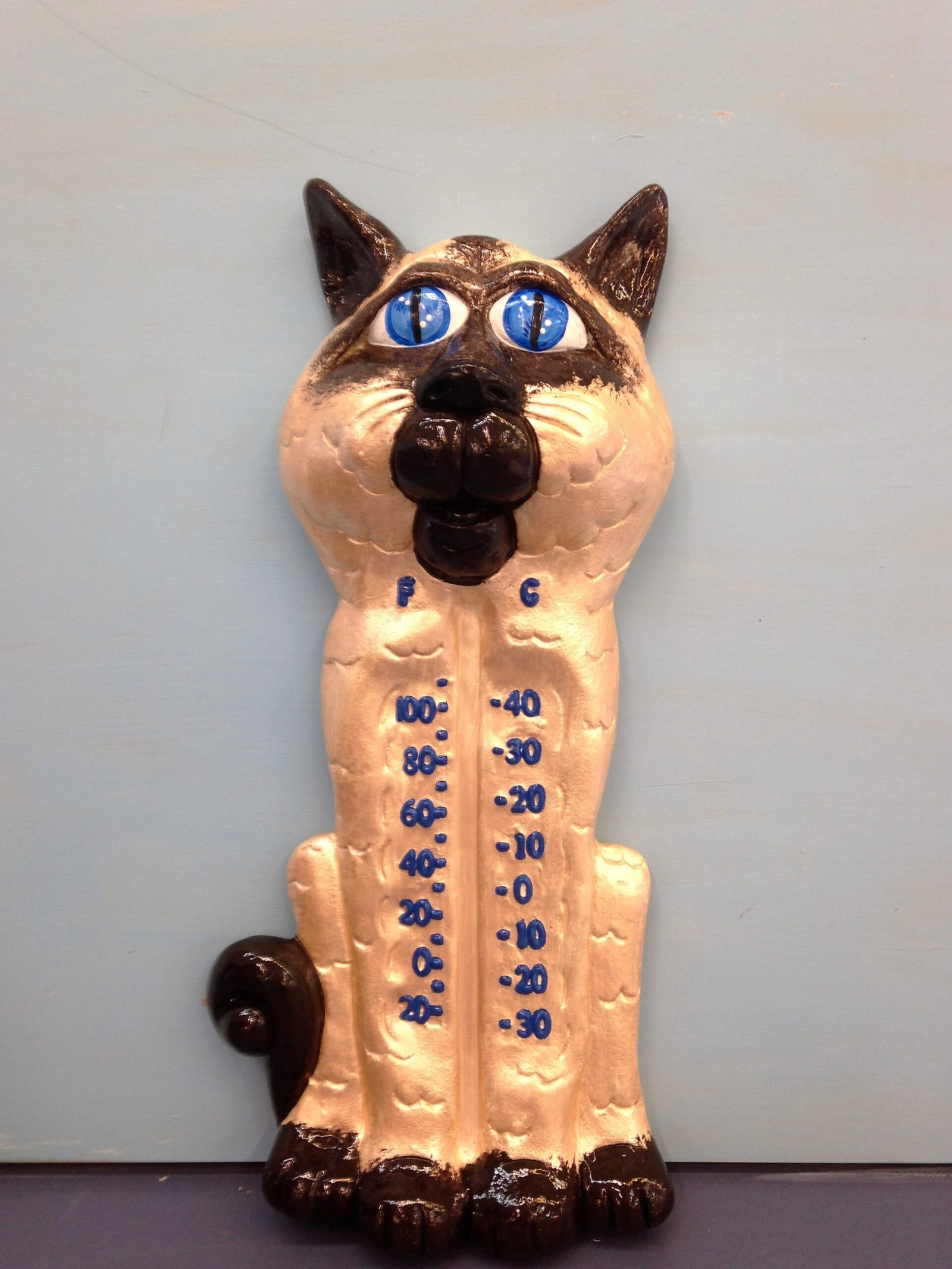 Item Number CAT-11. The size is approximately 13.5″ high by 6″ long. The price listed is for Bisque (white ceramics) so you can paint your own. Please contact us for the price of the Painted Art.