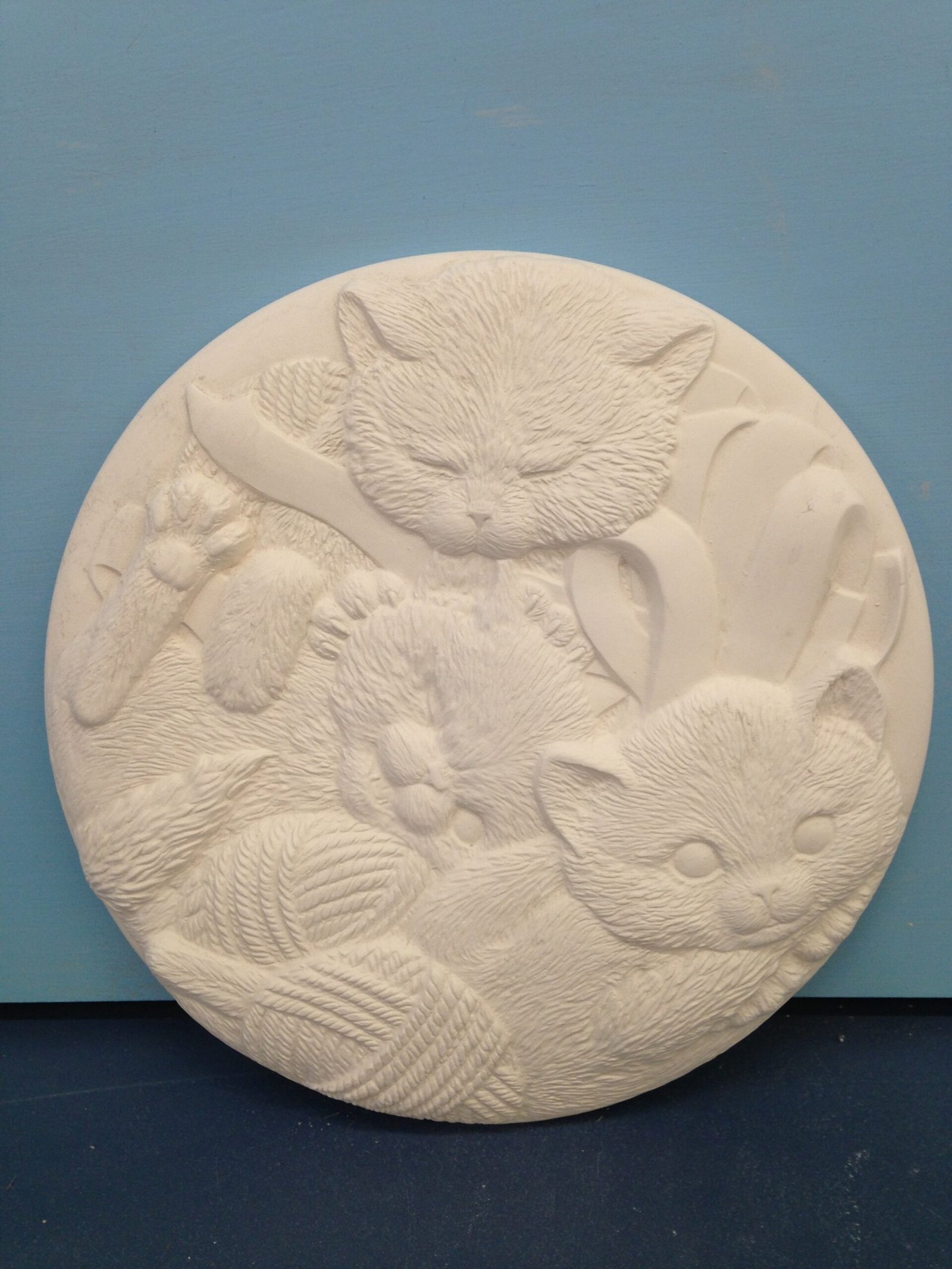 Item Number CAT-38. The size is approximately 6.75″ diameter. The price listed is for Bisque (white ceramics) so you can paint your own. Please contact us for the price of the Painted Art.