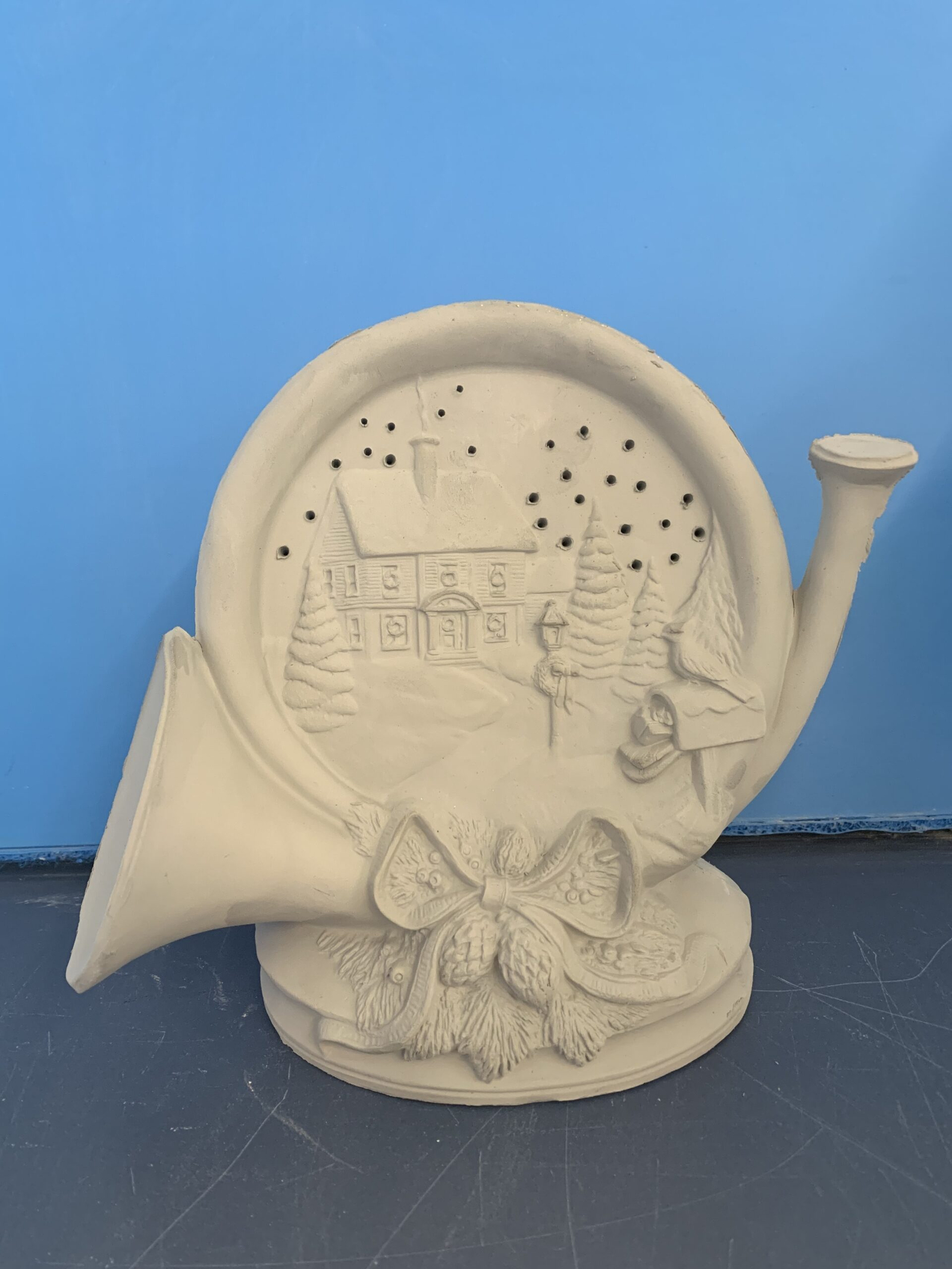 Item Number CM-6. The size is approximately 7″ high by 6.5″ long. The price listed is for Bisque (white ceramics) so you can paint your own. Please contact us for the price of the Painted Art.