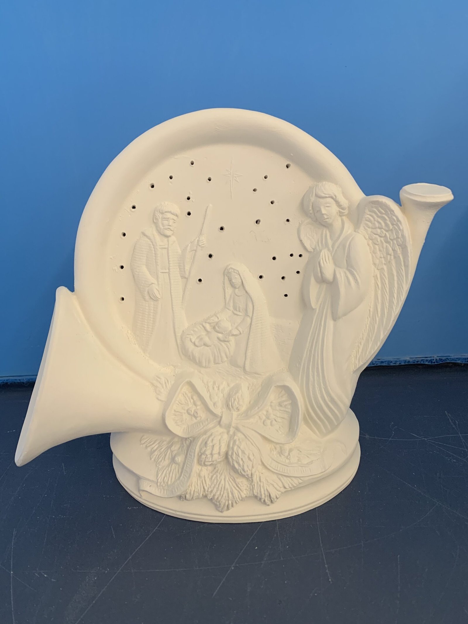 Item Number CM-3. The size is approximately 7″ high by 7″ long. The price listed is for Bisque (white ceramics) so you can paint your own. Please contact us for the price of the Painted Art.