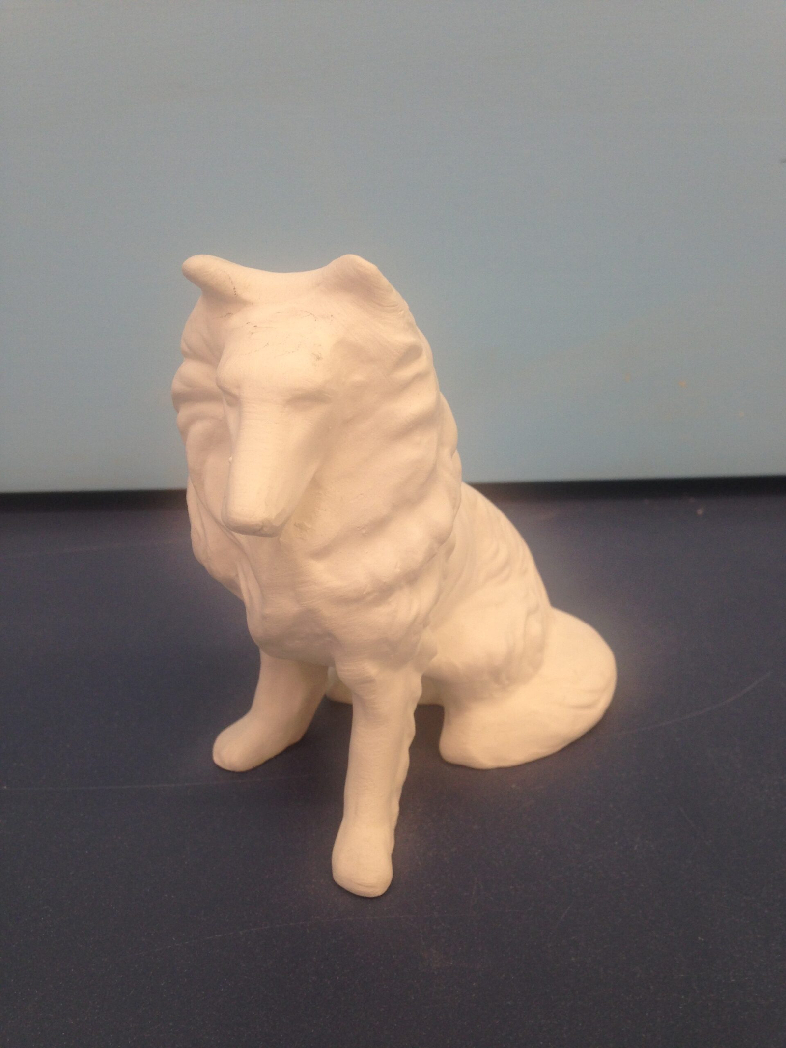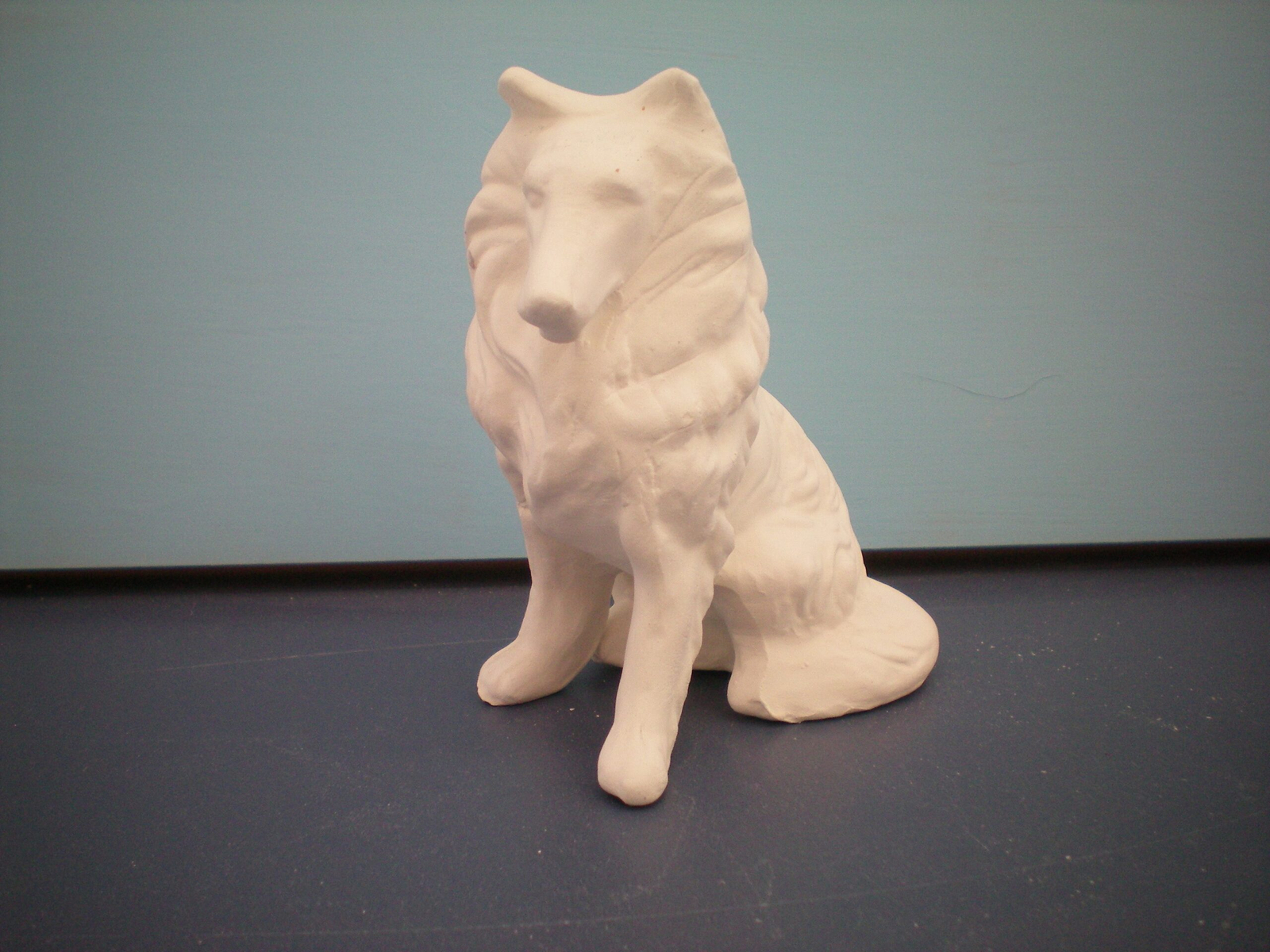 Item Number DOG-29. The size is approximately 4″ high by 2.5″ long. The price listed is for Bisque (white ceramics) so you can paint your own. Please contact us for the price of the Painted Art.