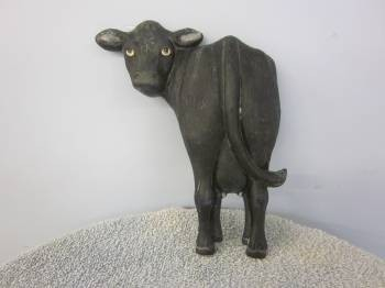 Item Number is COW-3. The size is approximately 8″ high by 6.5″ long. The price listed is for Bisque (white ceramics) so you can paint your own. Please contact us for the price of the Painted Art.