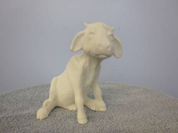 Item Number is COW-12. The size is approximately 6.25″ high by 7″ long. The price listed is for Bisque (white ceramics) so you can paint your own. Please contact us for the price of the Painted Art.