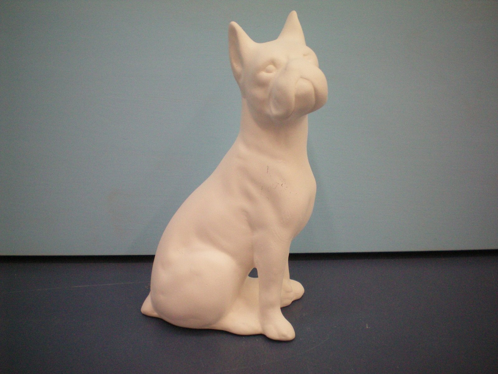 Item Number DOG-28. The size is approximately 6.5″ high by 3.75″ long. The price listed is for Bisque (white ceramics) so you can paint your own. Please contact us for the price of the Painted Art.