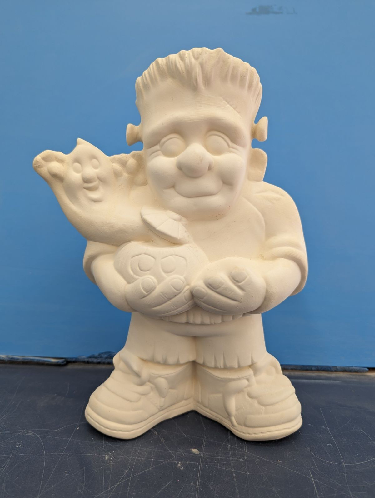 Item Number HAL-42. The size is approximately 11.5″ tall by 8″ wide. The price listed is for Bisque (white ceramics) so myou can paint your own. Please contact us for the price of the Painted Art.
