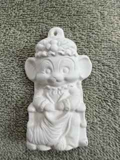 Item Number O-44. The size is approximately 2.75″ x 1.75″. The price listed is for Bisque (white ceramics) so you can paint your own. Please contact us for the price of the Painted Art.