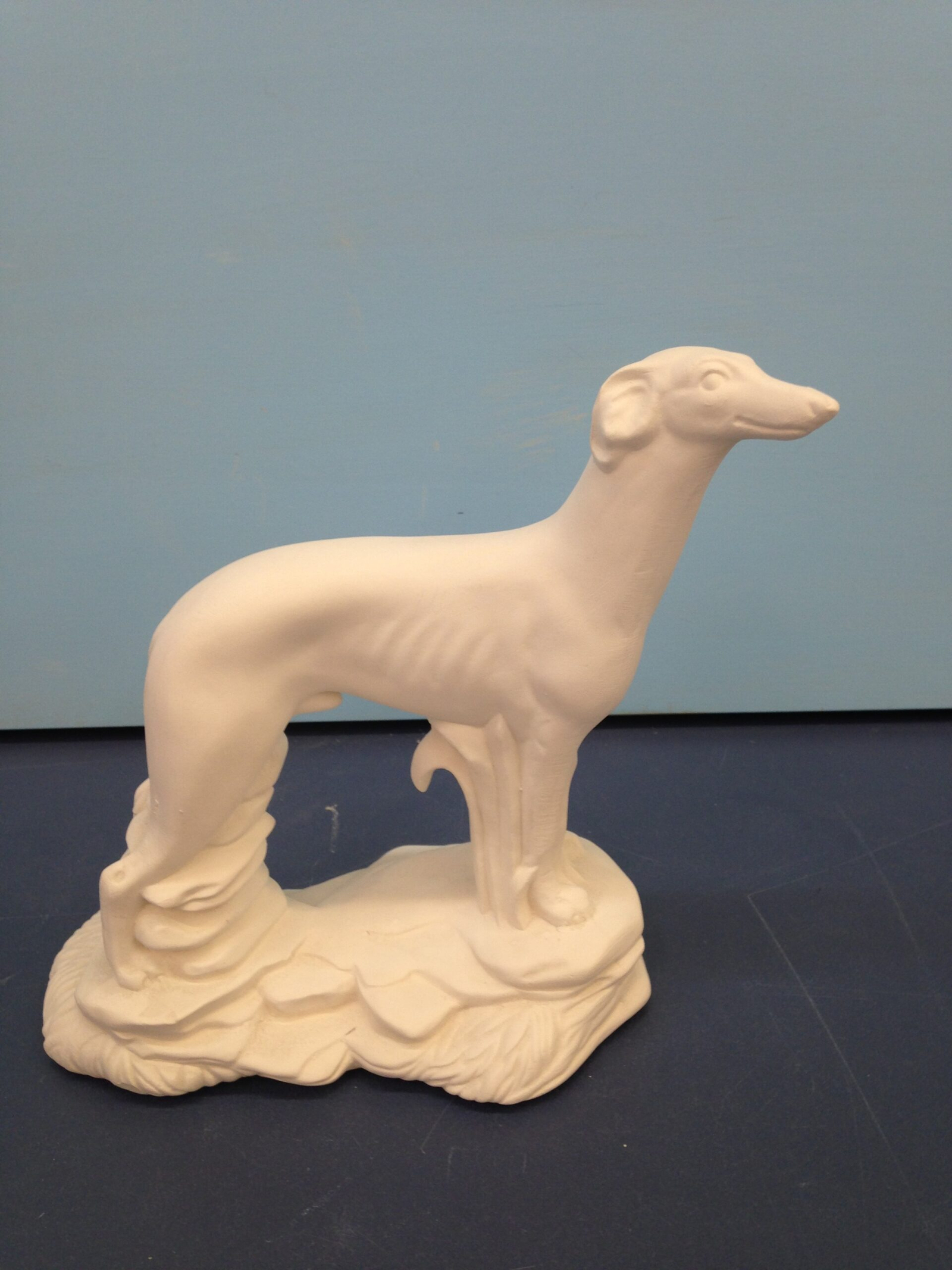 Item Number DOG-37. The size is approximately 7″ high by 8″ long. The price listed is for Bisque (white ceramics) so you can paint your own. Please contact us for the price of the Painted Art.