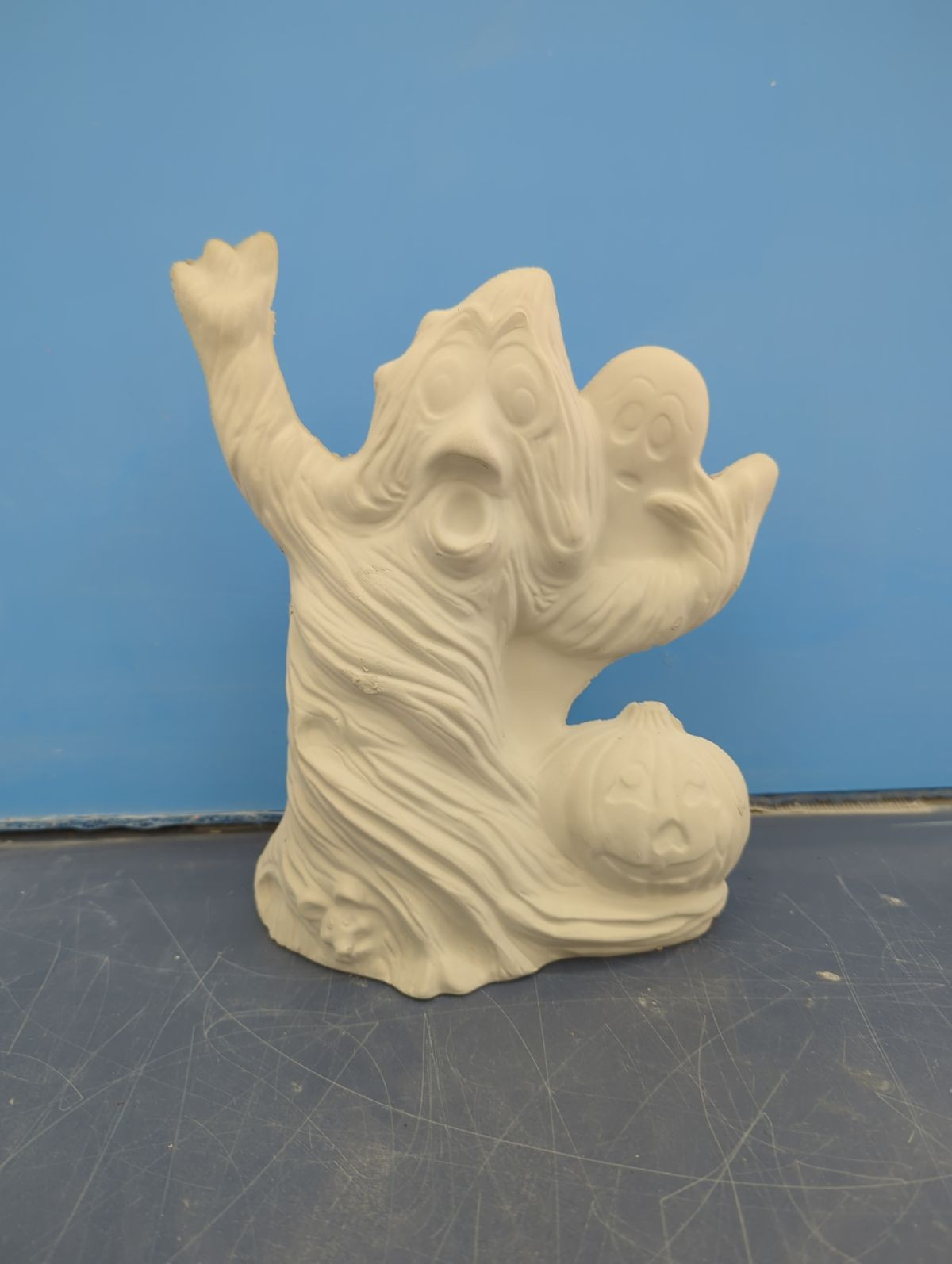 Item Number is HAL-1. The size is approximately 9.5″ high by 6.5″ long. The price listed is for Bisque (white ceramics) so you can paint your own. Please contact us for the price of the Painted Art.