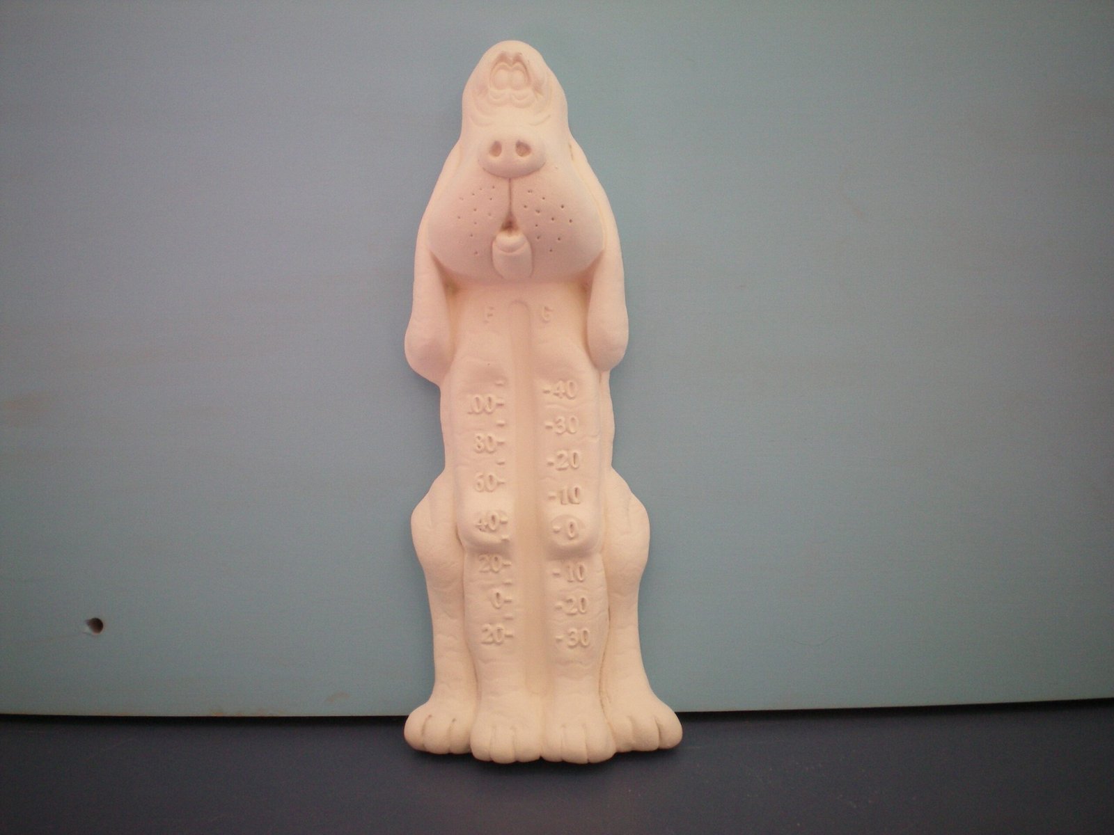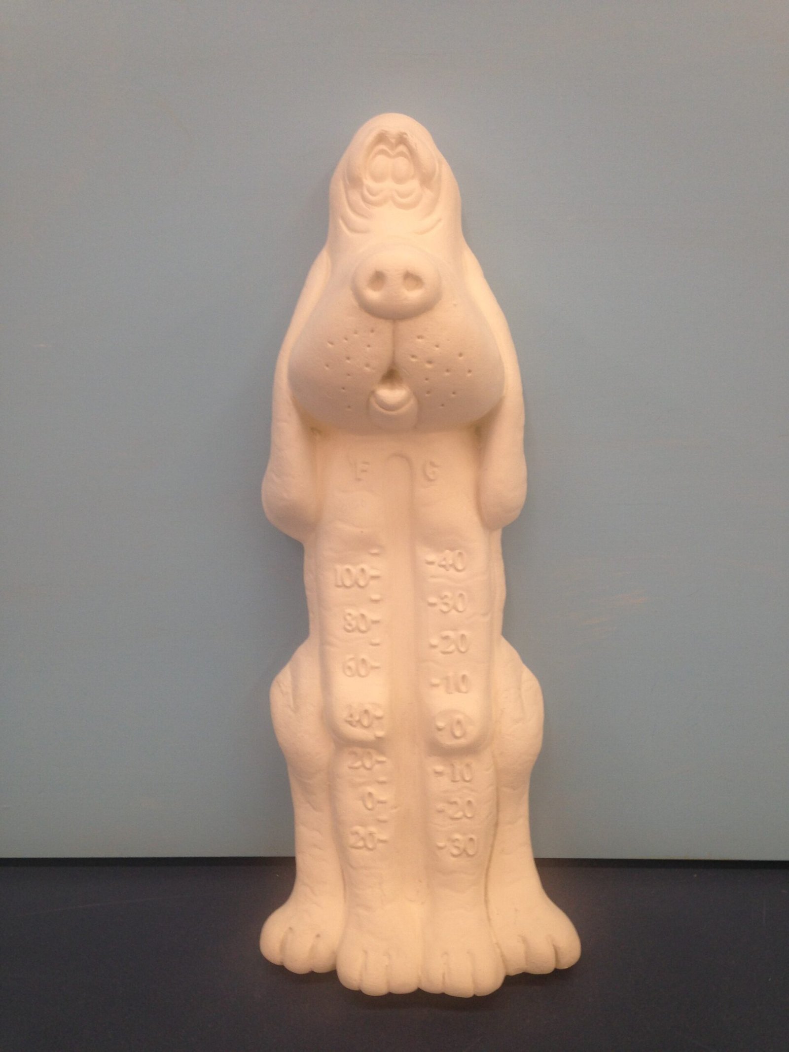 Item Number is DOG-10. The size is approximately 13″ high by 5″wide. The price listed is for Bisque (white ceramics) so you can paint your own. Please contact us for the price of the Painted Art.
