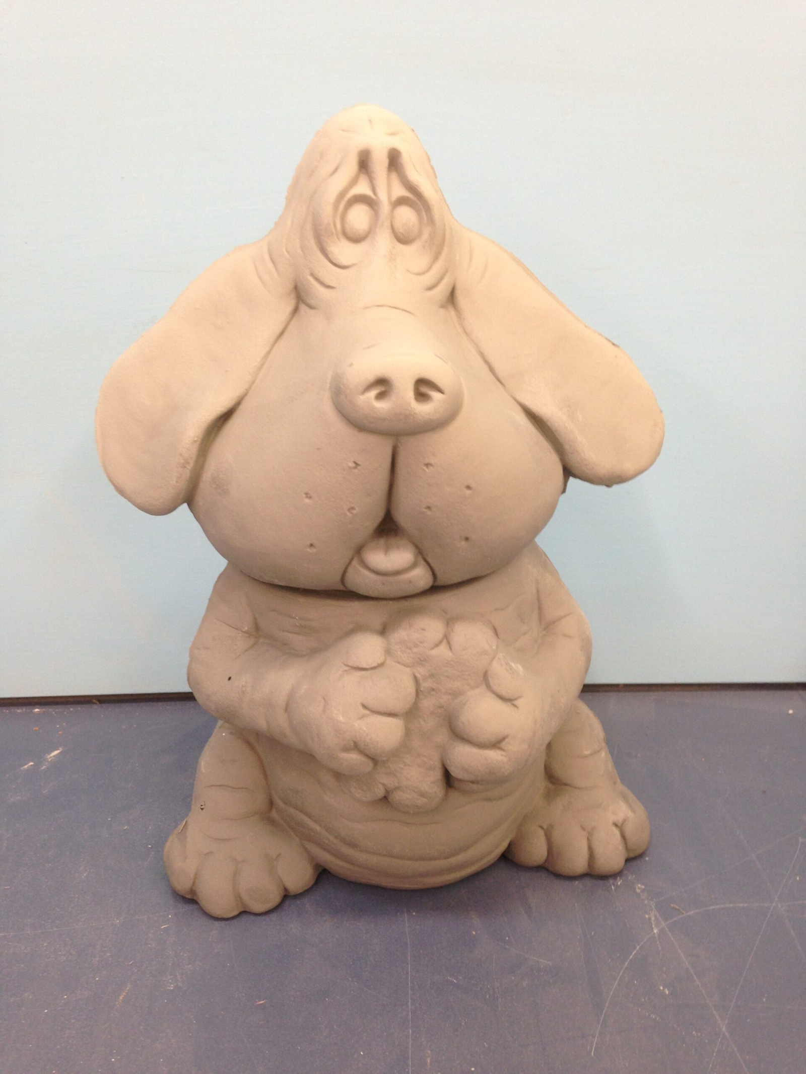Item Number DOG-26. The size is approximately 10.5″ high by 7″ wide. The inside of this item has CLEAR GLAZE in it. The price listed is for Bisque (white ceramics) so you can paint your own. Please contact us for the price of the Painted Art.