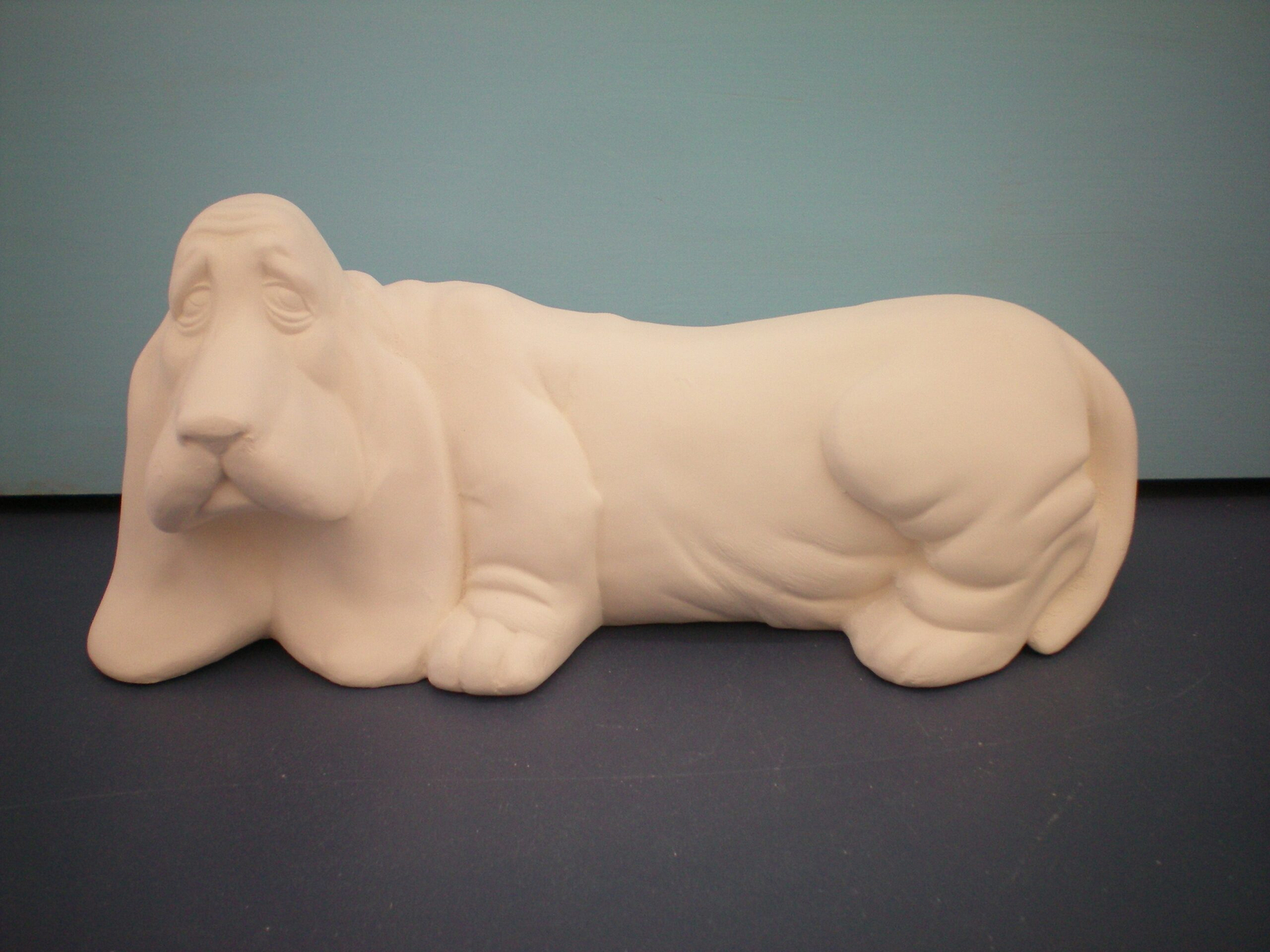 Item Number DOG-23. The size is approximately 4″ high by 9.5″ long. The price listed is for Bisque (white ceramics) so you can paint your own. Please contact us for the price of the Painted Art.