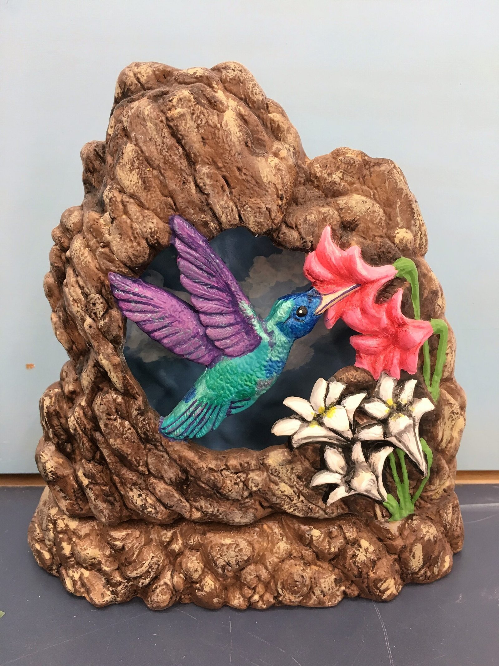 Item Number BIR-25. The size is approximately 8.25″ high by 7.5″ long. The price listed is for Bisque (white ceramics) so you can paint your own. Please contact us for the price of the Painted Art.
