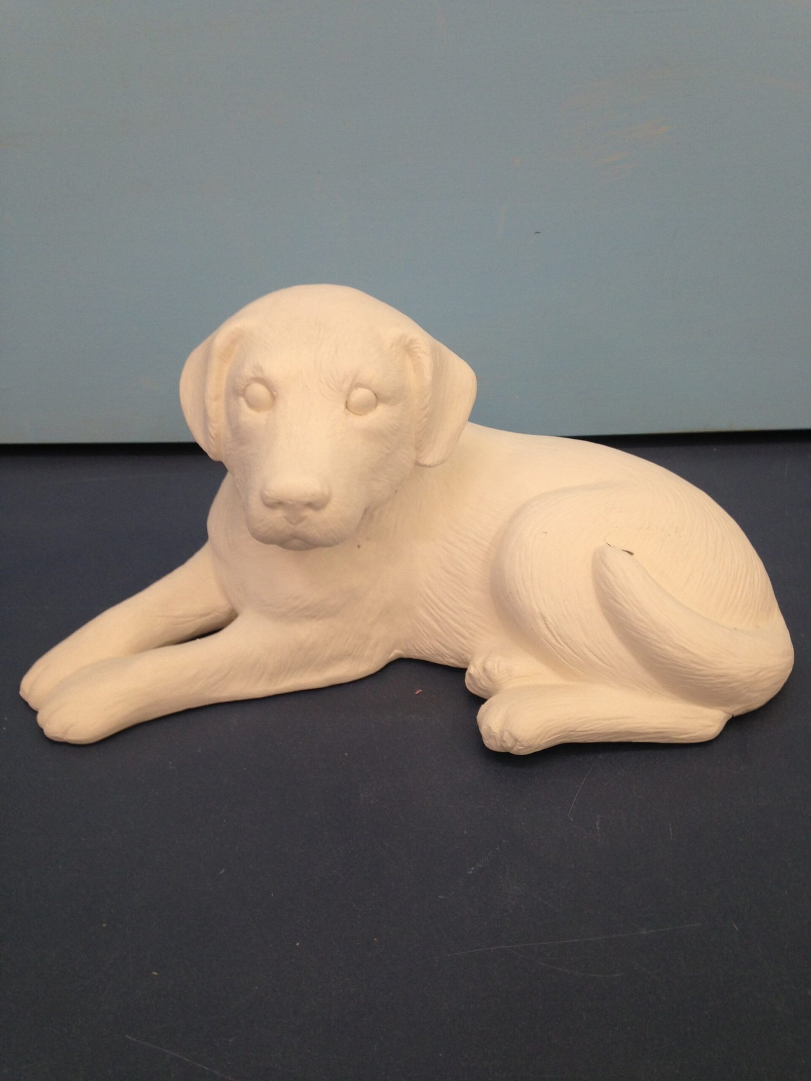 Item Number is DOG-47. The size is approximately 4.5″ high by 9″ long. The price listed is for Bisque (white ceramics) so you can paint your own. Please contact us for the price of the Painted Art.