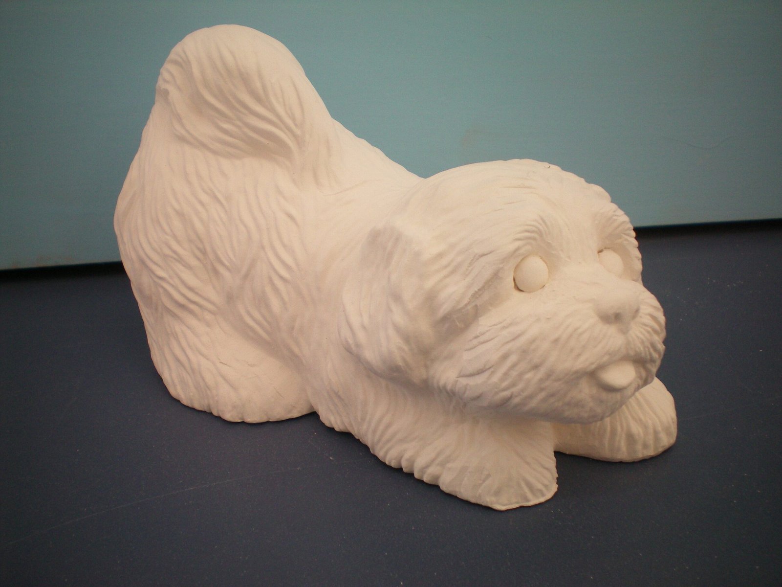 Item Number is DOG-45. The size is approimately 4.5″ high by 7″ long. The price listed is for Bisque (white ceramics) so you can paint your own. Please contact us for the price of the Painted Art.