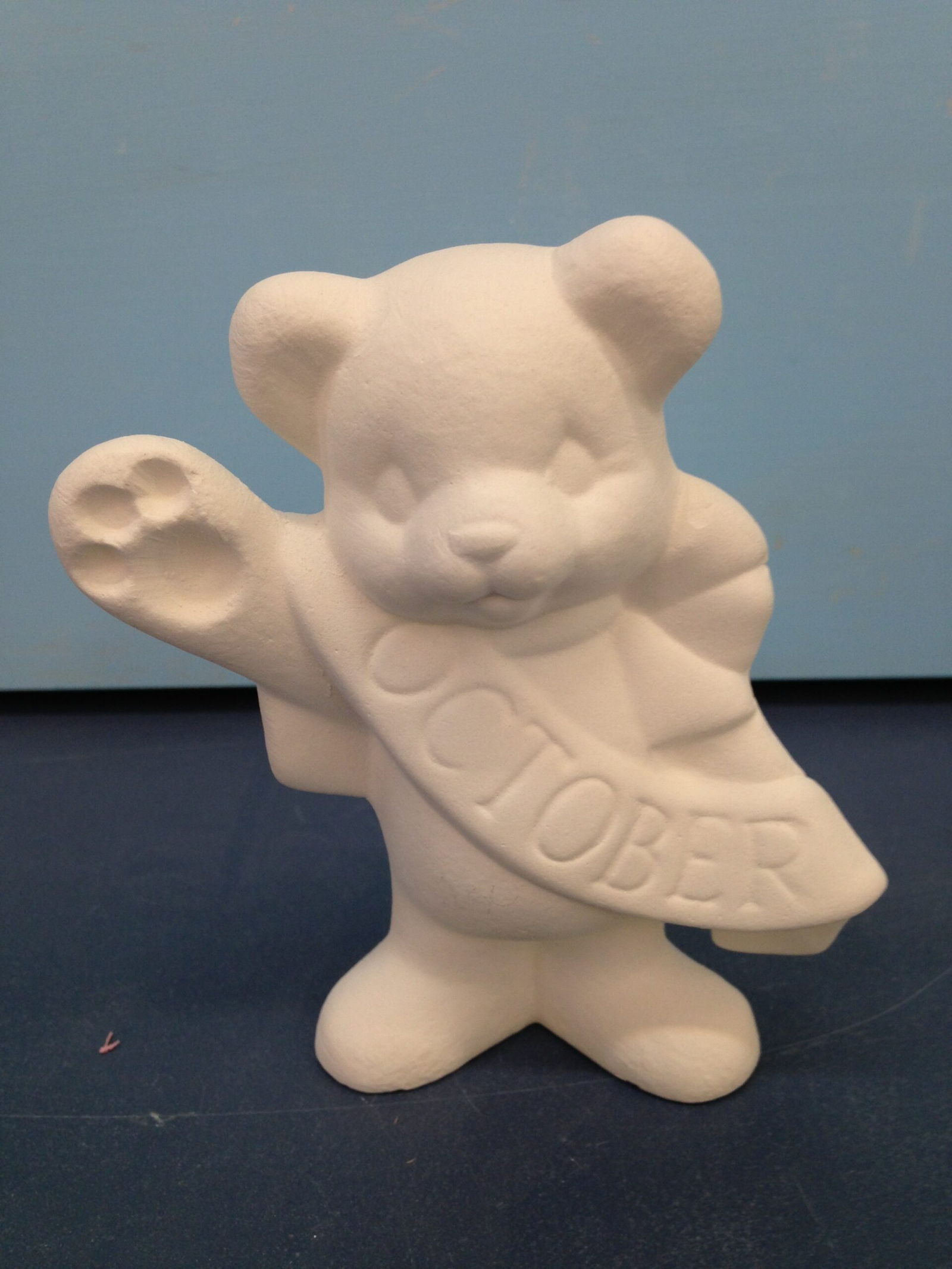 Item number BE-19-oct. The size is approximately 4.25″ high by 3.5″ long. The price listed is for Bisque (white ceramics) so you can paint your own. Please contact us for the price of the Painted Art.