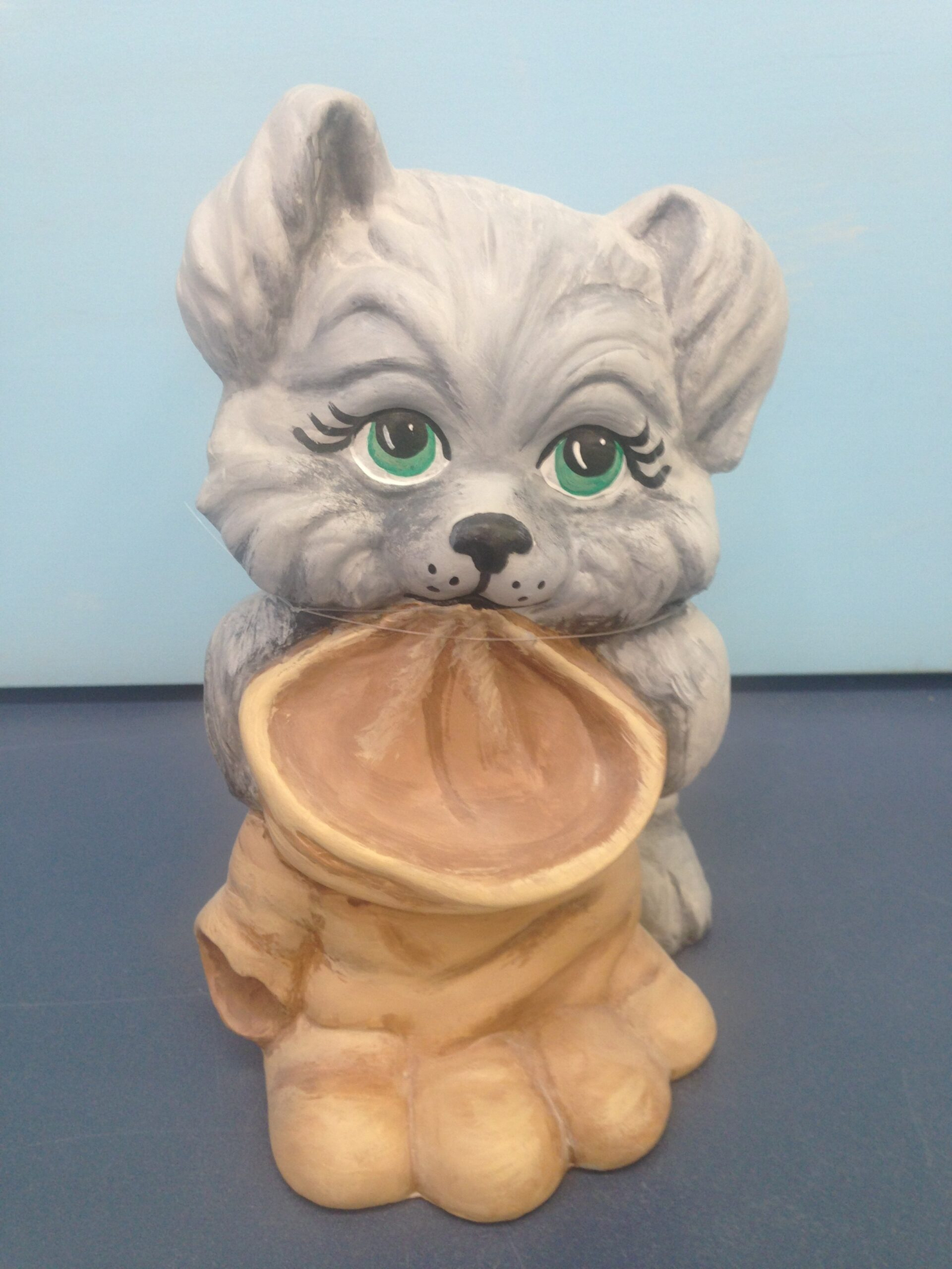 Item Number is DOG-30. The size is approximately 7″ high by 5.5″ long. The price listed is for Bisque (white ceramics) so you can paint your own. Please contact us for the price of the Painted Art.