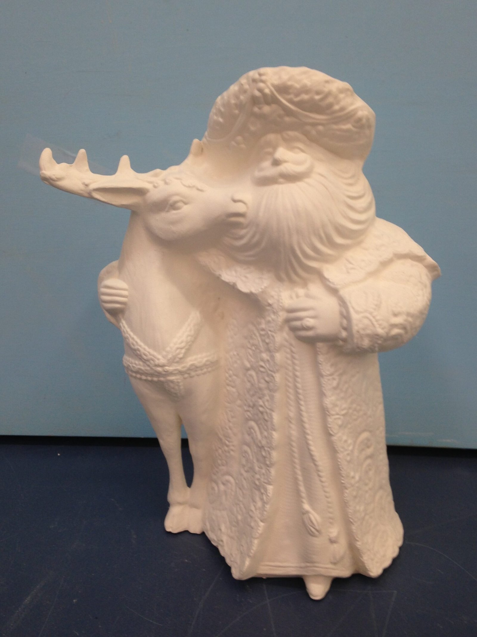 Item Number A-3. The size is approximately 8″ high by 6.5″ long. The price listed is for Bisque (white ceramics) so you can paint your own. Please contact us for the price of the Painted Art.