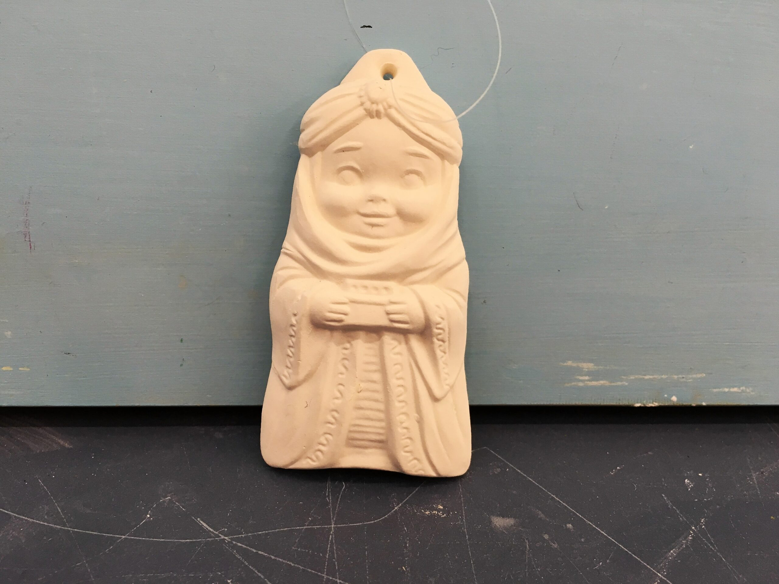 Item Number O-14. The size is approximately 3.5″ high by 1.75″ long. The price listed is for Bisque (white ceramics) so you can paint your own. Please contact us for the price of the Painted Art.